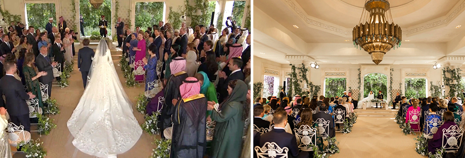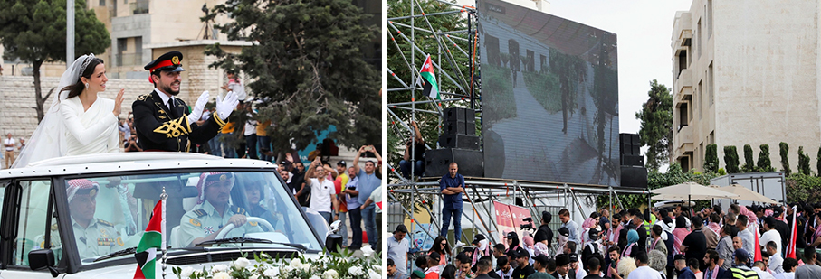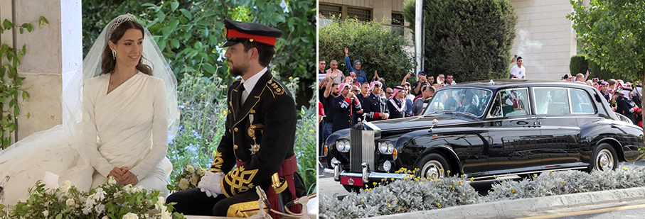 El príncipe heredero de Jordania se casó con la arquitecto Rajwa Al Saif el 1° de junio de 2023, hija de una prominente familia saudita en una ceremonia repleta de estrellas y simbolismo en el Palacio de Zahran en Ammán, a la que asistieron miembros de la realeza y otras personalidades de todo el mundo mientras la multitud se reunían en un ambiente de entusiasmo en todo el reino para presenciar la boda real de Jordania.